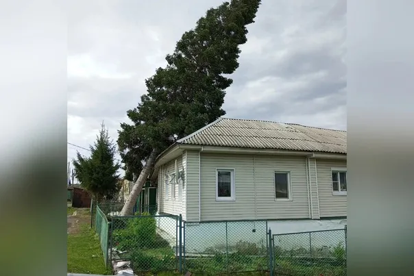 В Челябинской области 20-метровая пихта рухнула на жилой дом