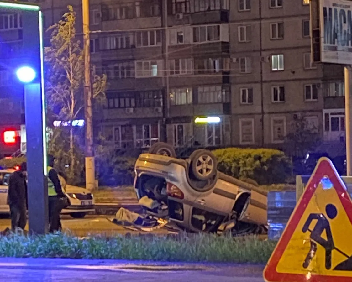 В Магнитогорске автомобиль перевернулся на крышу на месте дорожных работ