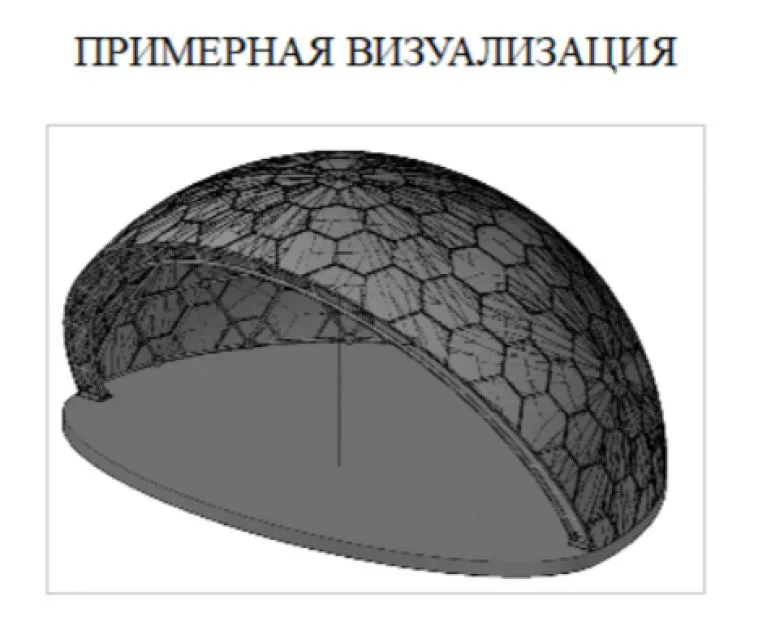 В качестве покрытия каркаса купола предусмотрены 6-гранные панели из алюмокомпозита толщиной от 3 мм», — говорится в описании. Подиум-основание выполняется из стальных элементов. Режим эксплуатации — круглогодичный.