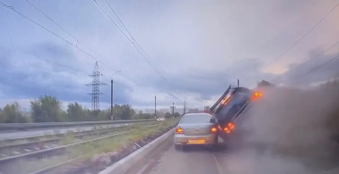 Авария произошла 26 мая, в зоне ремонта дорожного полотна. Видеорегистраторы проезжавших мимо машин запечатлели момент ДТП.