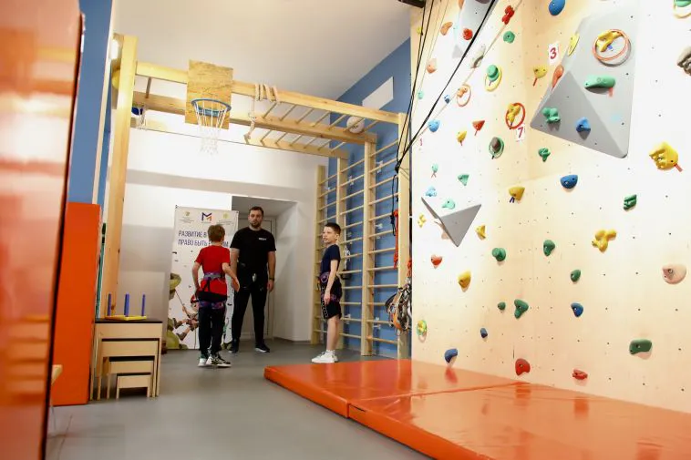 - Спортивная зона с интерактивным оборудованием, тренажерами и скалодромом.