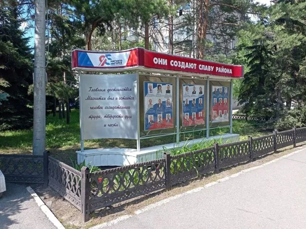 Стенд "Они создают славу района" был установлен в 2004 году. За 20 лет на нем было размещено более 500 портретов людей, проживающих или работающих в Ленинском районе.