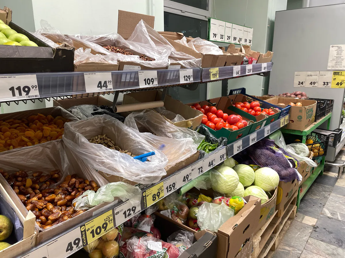 Среди продовольственных товаров выявлено 52 позиции с уменьшением стоимости. Особенно выделяются овощи. Цена на свежие огурцы резко упала, они подешевели на 29% и в мае стоили около 108 рублей за килограмм. Томаты также значительно подешевели – до 216 рублей за килограмм (-19,7%).