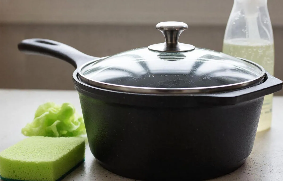 Ополосните крышку тёплой водой, смахивая крошки еды. Не трите — просто подготовьте поверхность.