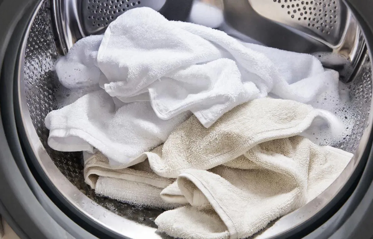 Замочите влажные полотенца, придавив грузом, на 12 часов: за ночь состав вытянет въевшуюся грязь, окрасив воду в желтый. Прополощите сначала в ледяной воде для фиксации, потом в теплой, завершите машинной стиркой без агрессии — результат поразит свежестью.