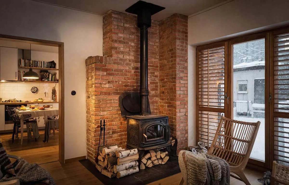 Чугунные камины служат 30+ лет, интегрируясь в дизайн с панорамным стеклом и боковыми окнами. Экран из талькохлорита вокруг корпуса превращает печь в "батарею", отдающую тепло сутки. Дизайнеры отмечают: такие элементы стали хитом в скандинавском стиле, где огонь виден из любой комнаты.