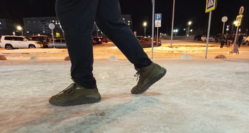 Передвигайтесь аккуратными шагами, слегка согнув колени. Держите руки свободными для смягчения падения при необходимости. Будьте внимательны: спешка увеличивает вероятность поскользнуться.